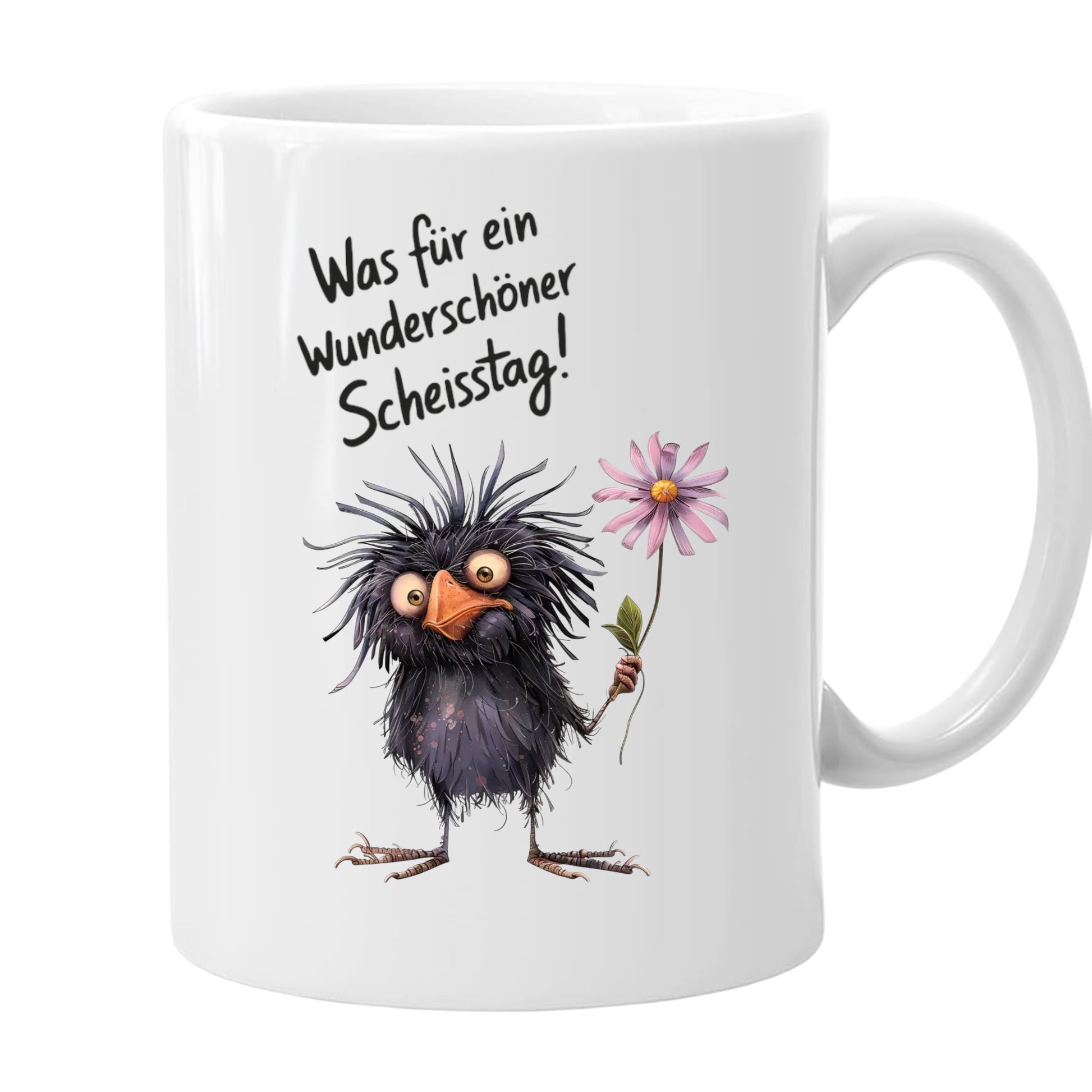 Lustige Kaffeetasse mit Rabe, 330ml, Spruch 'Was für ein wunderschöner Scheißtag',