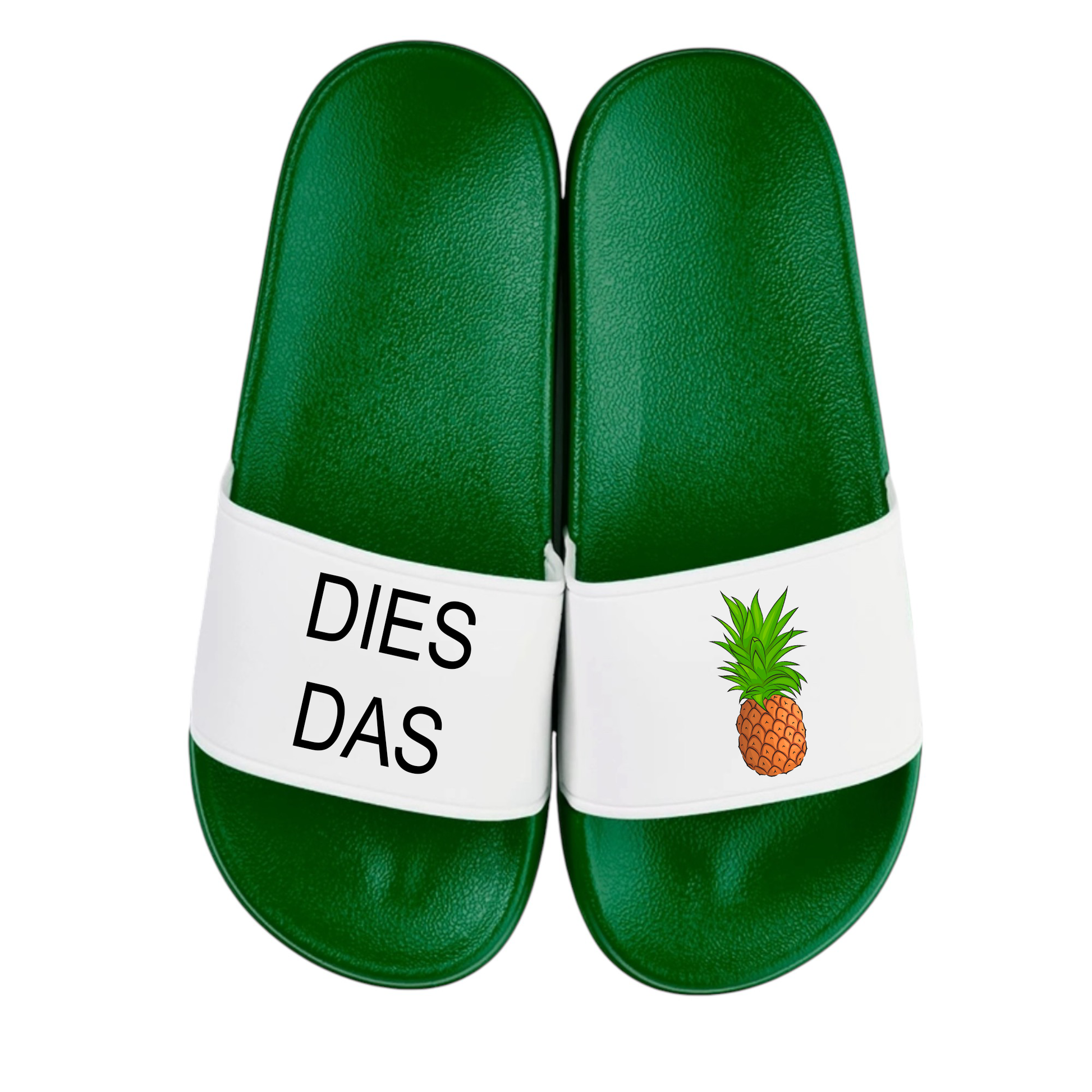 Wenn du also auf der Suche nach einem Statement-Accessoire für deinen Sommer bist, dann sind unsere Badelatschen mit ihrem außergewöhnlichen Look und den individuellen Sprüchen genau das Richtige für dich. Hol dir jetzt dein Paar und peppe deinen Sommer-Look mit einer extra Portion Persönlichkeit auf!