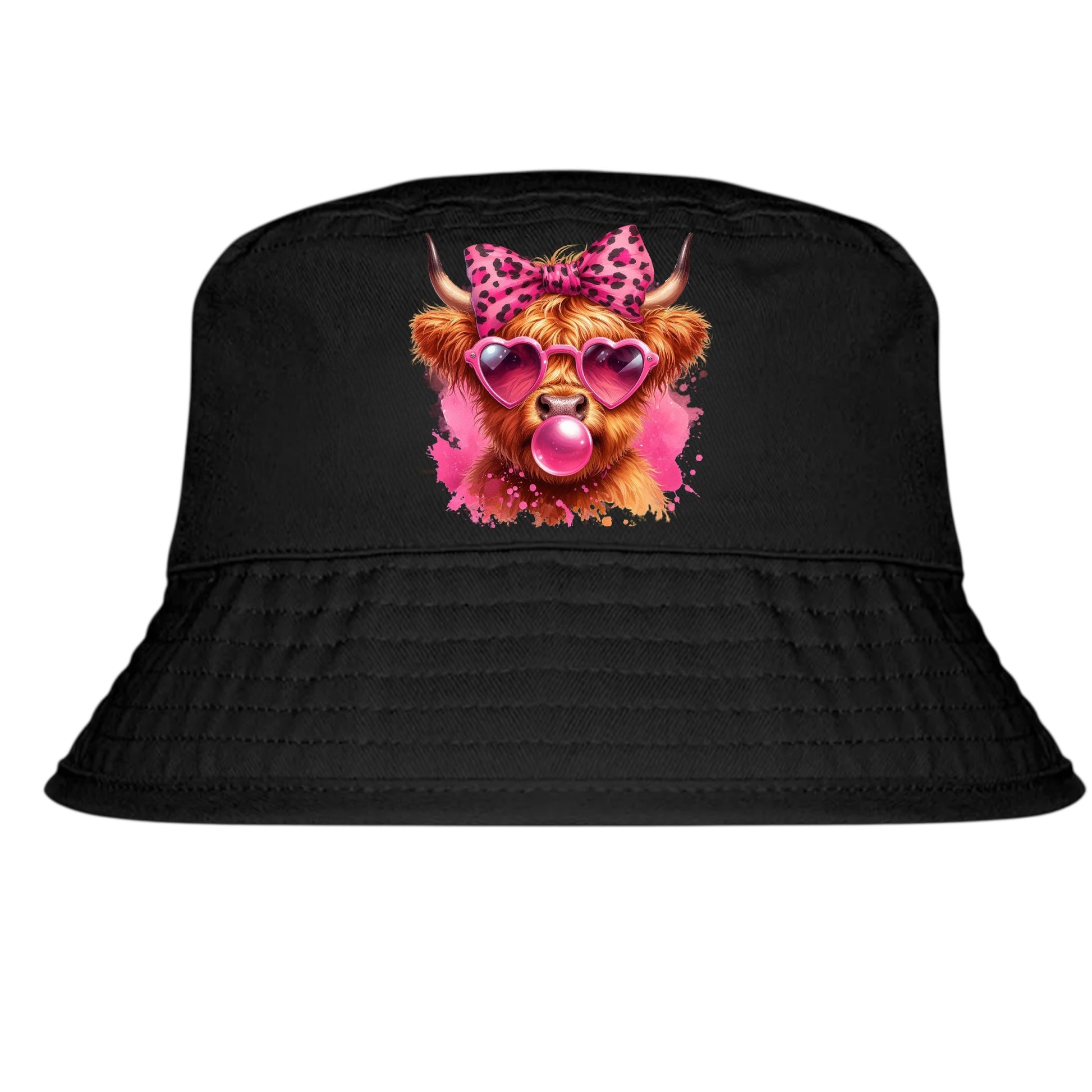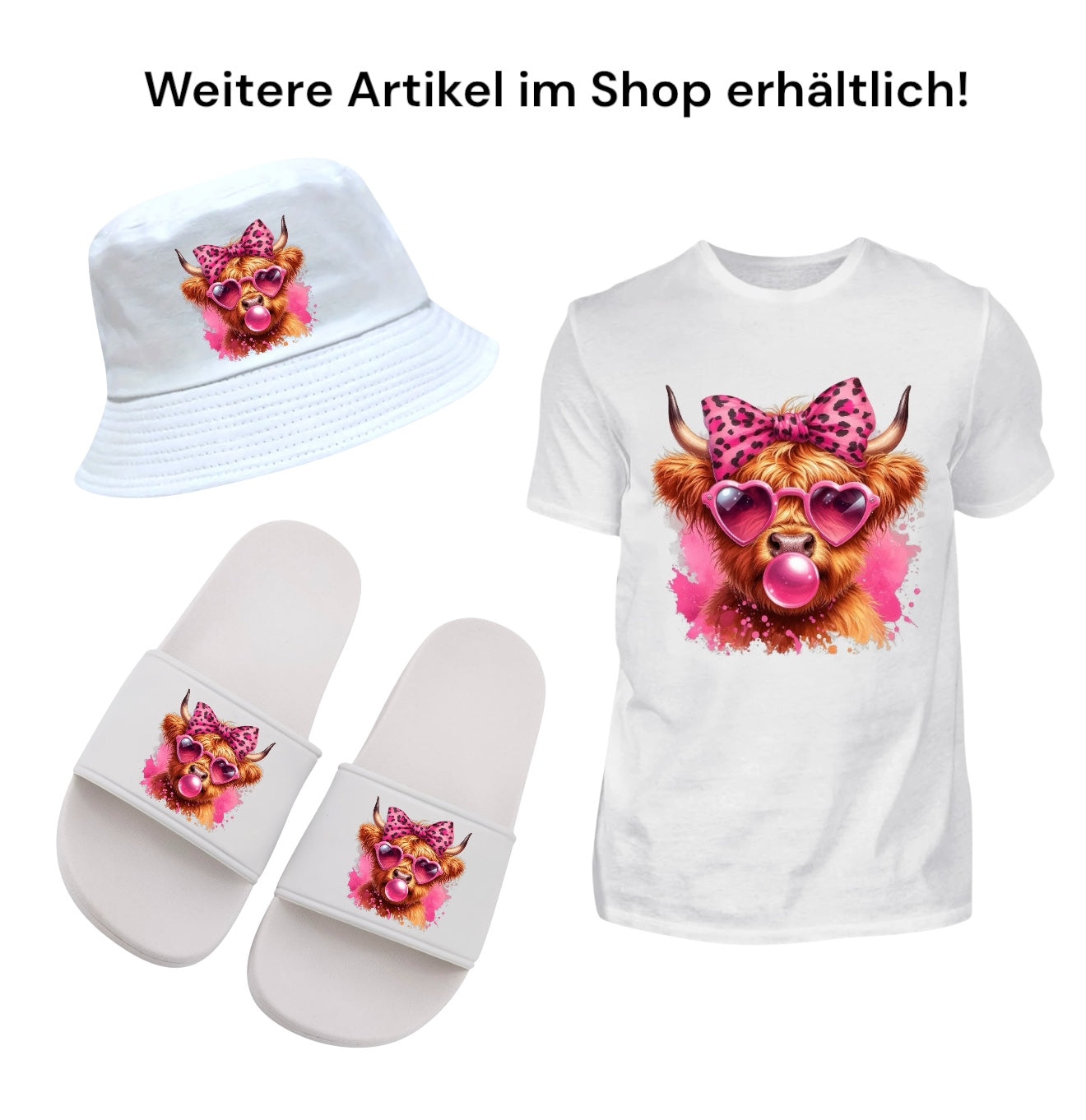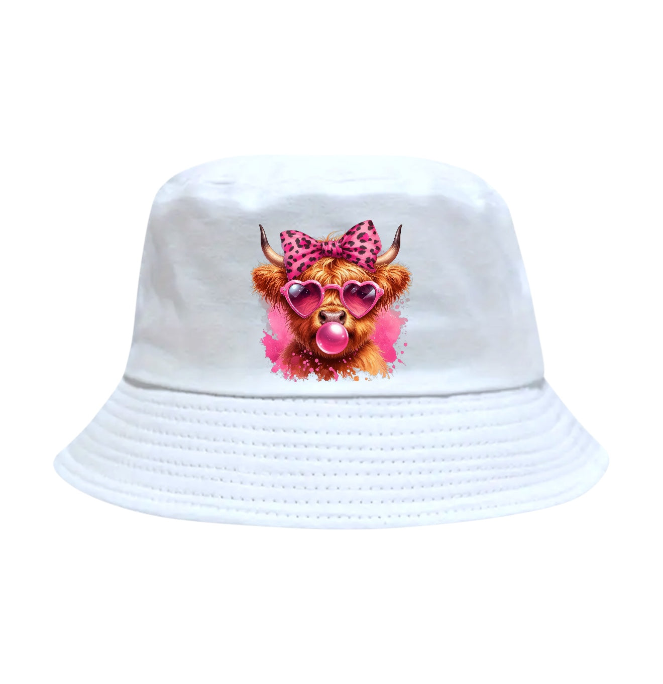 Mach dich bereit für stylische Sonnentage und unvergessliche Partys mit unserem „Bubble Cow“ Fischerhut! Dieser coole Bucket Hat kombiniert lässigen Retro-Vibe mit einem frechen, tierischen Twist: Auf der Vorderseite ziert eine Kuh mit Stirnband und knalliger Bubble-Gum-Blase dein neues Lieblingsaccessoire.