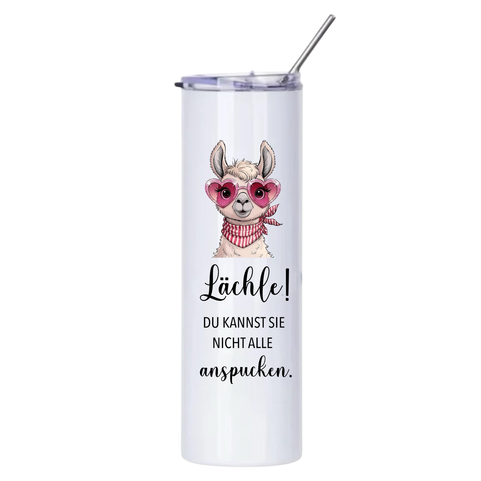 Edelstahl-Thermobecher + Edelstahl Strohhalm, Lama Design, Spülmaschinenfest, Lächle! Du kannst sie nicht alle anspucken.